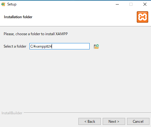 そこで、インストールディレクトリを C:\xampp824 に変更しました。