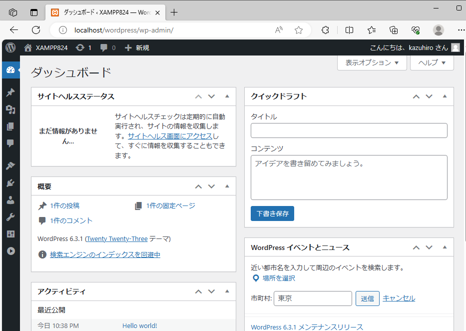 例として、C:\xampp と C:\xampp824 にWordPressをインストールしてみましょう。