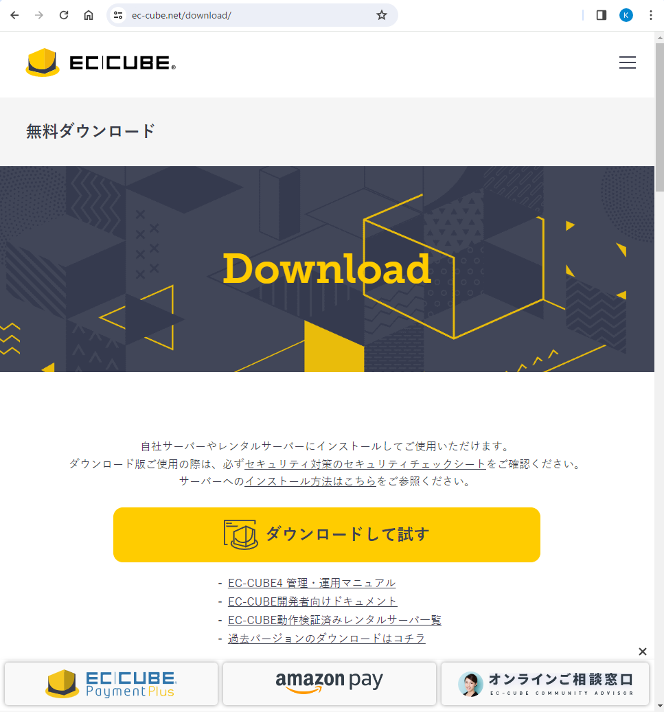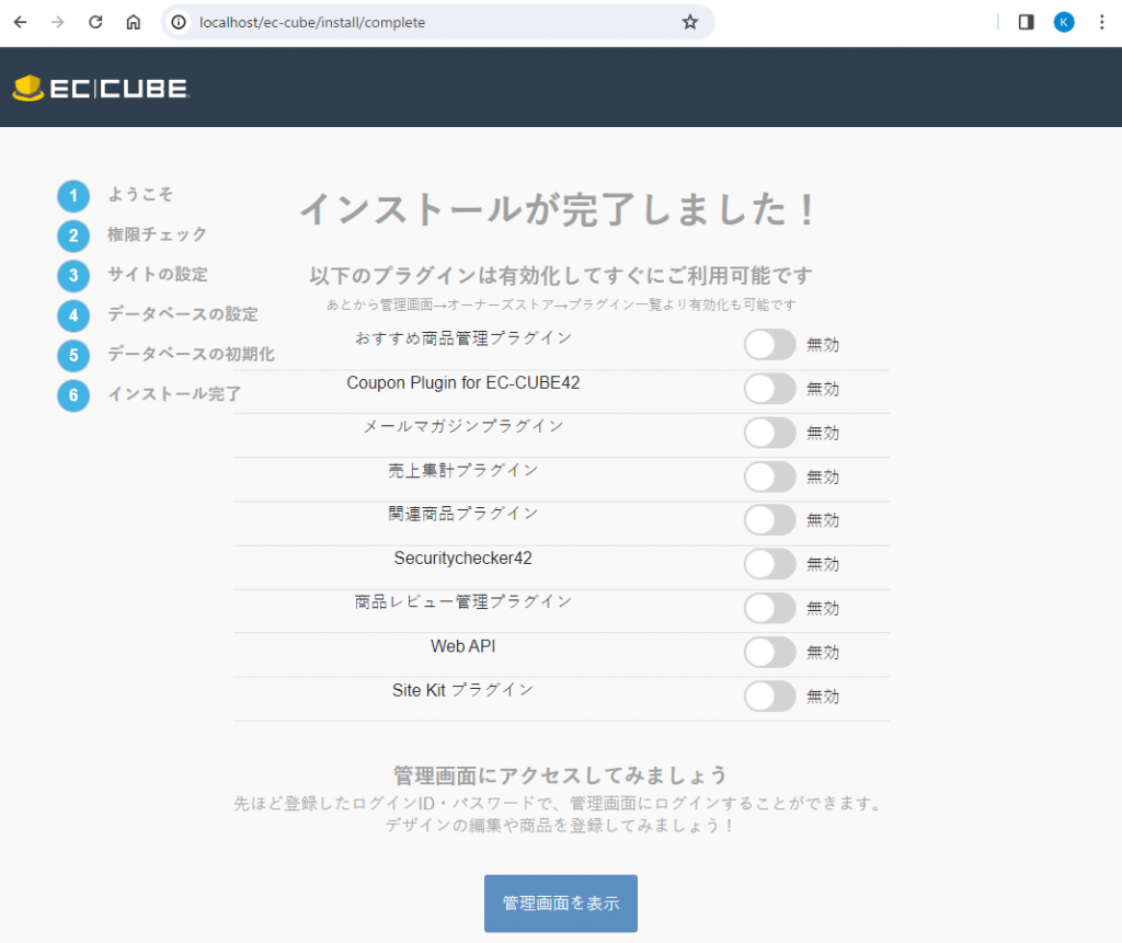 正常にEC-CUBEのバックヤードにログインできました。
