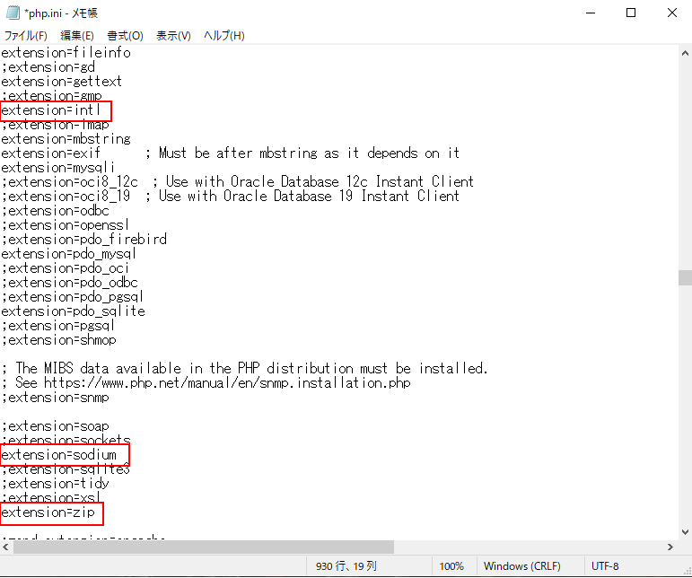 #先頭の;をとって、有効化します。これで、先ほどのCakePHPをインストールするコマンドを再度実行すれば、CakePHPがインストールできます。