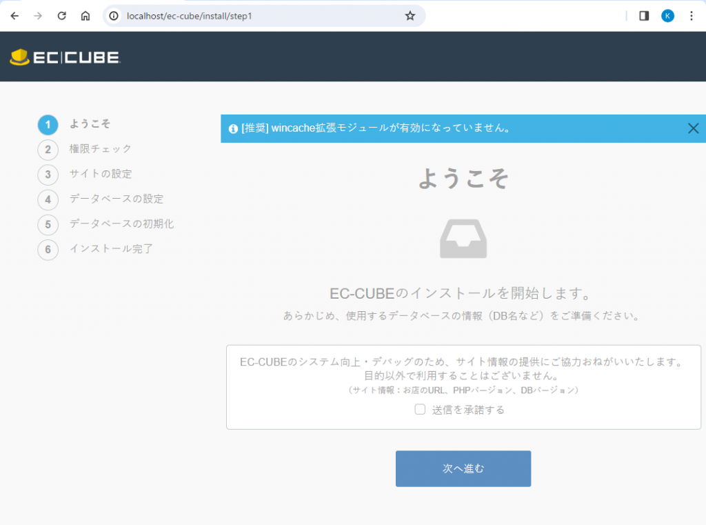 セットアップウィザードがスタートします。