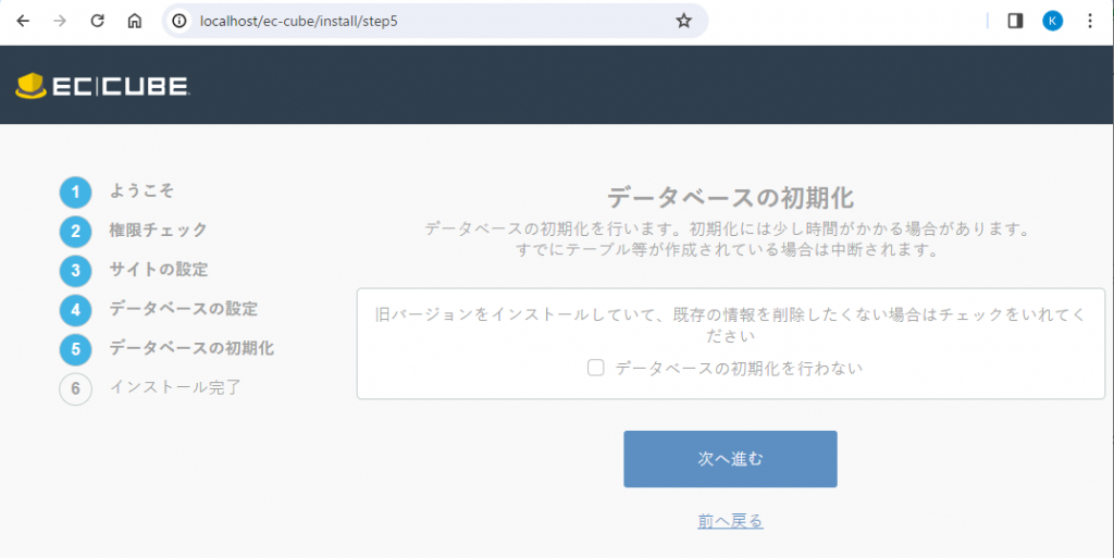 データベースの種類は変更せず、そのままMYSQL