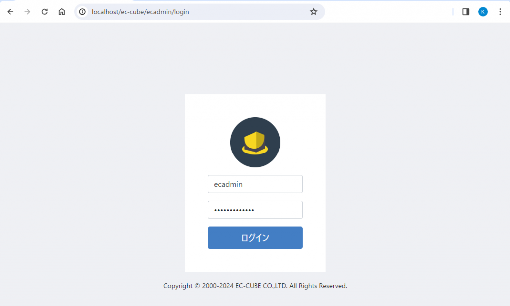 管理画面ログインIDは「ecadmin」