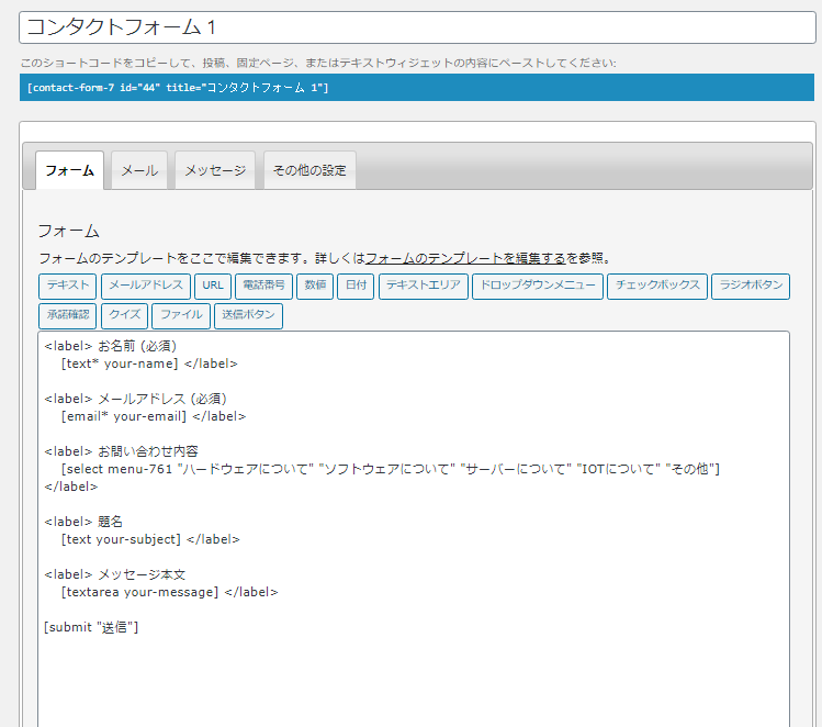 例えば私のサイトでは、お問い合わせのフォームがありますが、このフォームは、Contact Form 7というプラグインで出来ています。