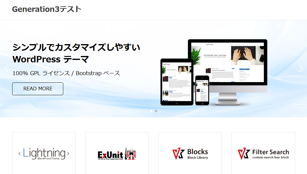 結果、WordPressをインストールし、テーマとしてlightningを新規インストールすると、このG3版が入る事になります。